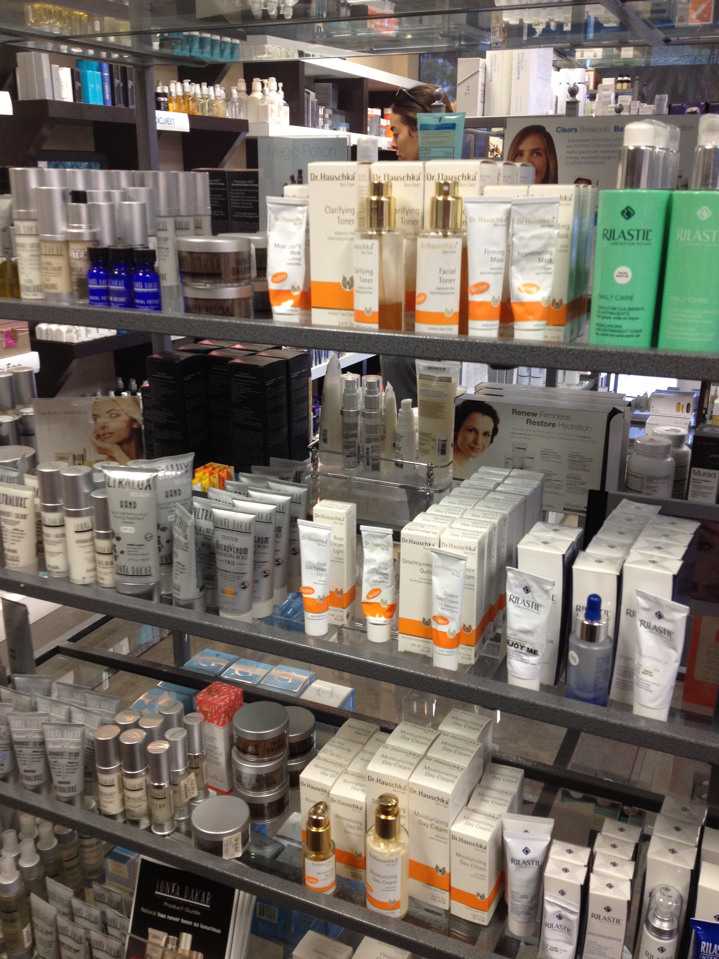 Here we have the full line of Tata Harper skincare, sitting right at the front entrance like it’s no big deal.  I once used a free sample of her Reparative Moisturizer and I have to say, I got a nice case of Doutzen Kroes face for the day.  It was great!  What was even better?  Wasting my Doutzen Kroes face on five classes of freshmen who literally could not care less because they’re too busy popping their own zits.  I’ll be saving that sample for when I do something swank next time, like when I go to Mother’s Market and order a juice.